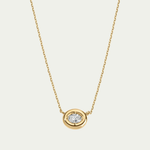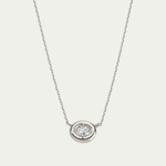 The Bubble Oval Diamond Solitaire Necklace features an oval-cut diamond in a softly rounded bezel, designed to be worn alone or layered.